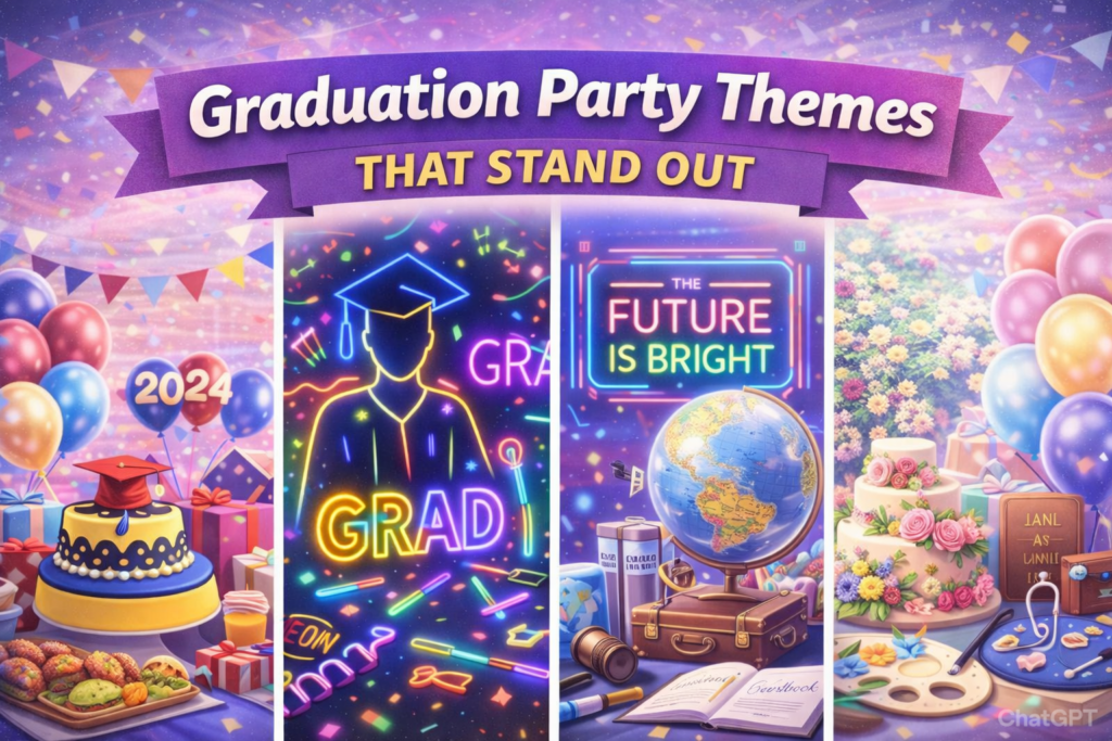Themes bring cohesion. They guide everything from invitations to décor and menu choices. Some of the most popular graduation party ideas revolve around personalization celebrating who the graduate is and where they’re headed.