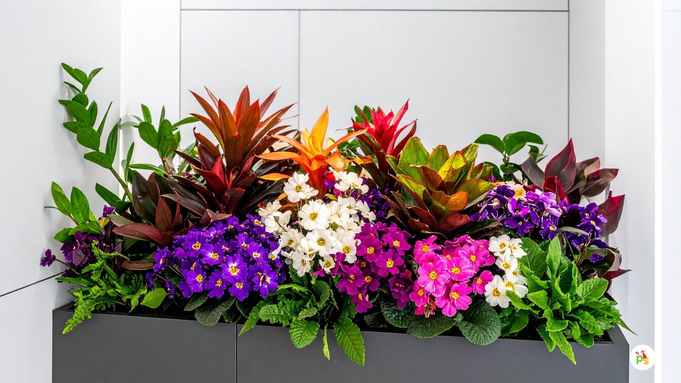 Use tulips, daffodils, pansies, or hyacinths in coordinated shades. Layer tall plants in the back and trailing greens in the front.