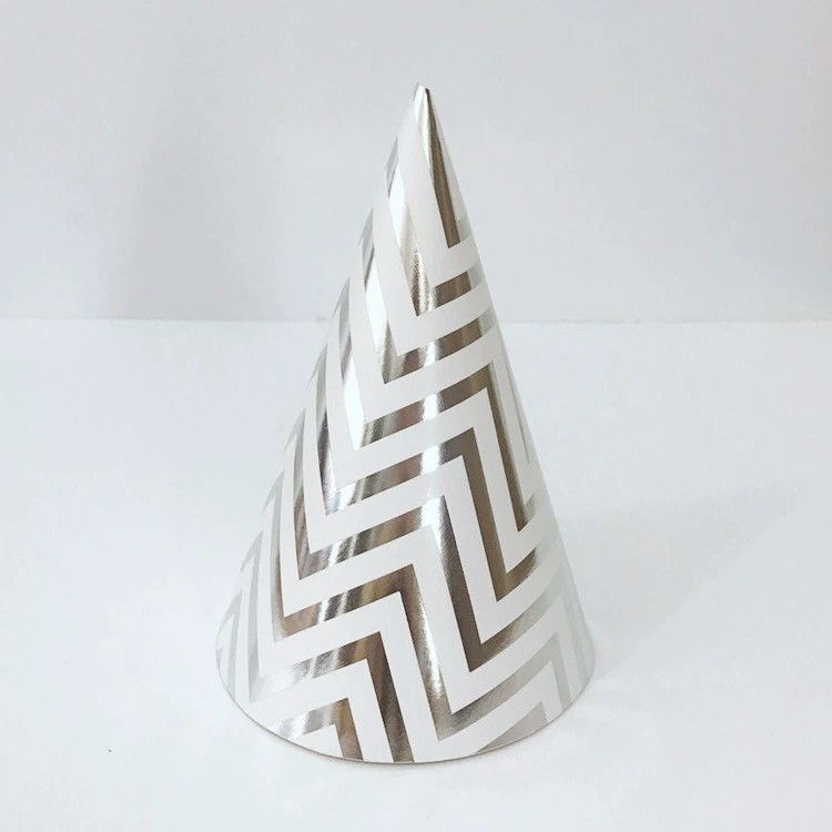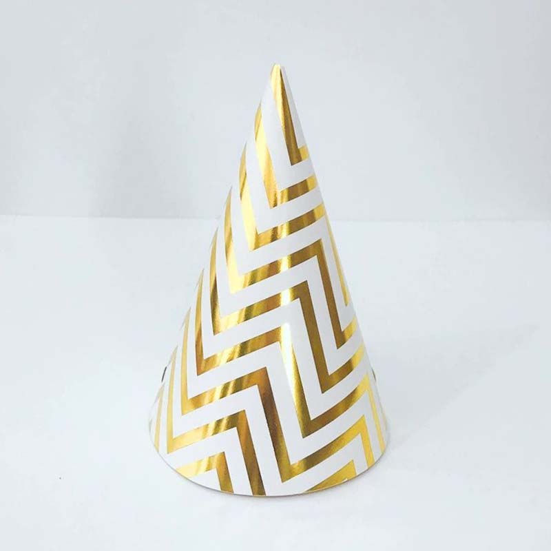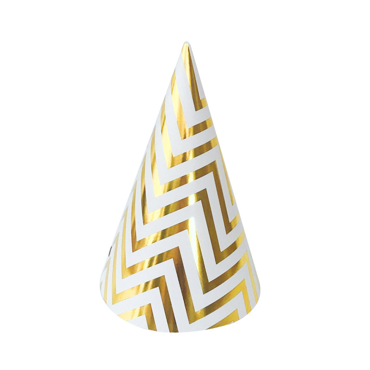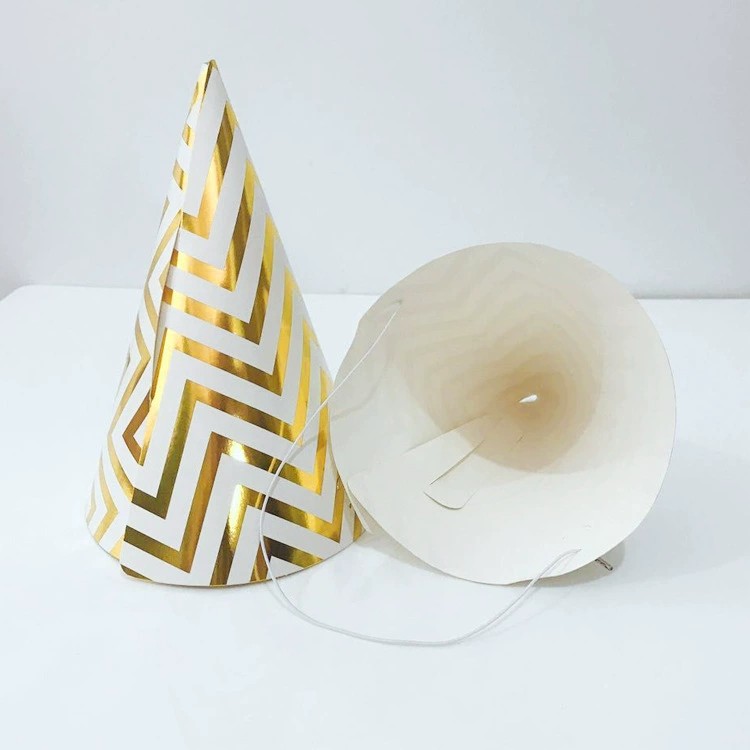 Product Type: Birthday paper cone hats with gold stamping