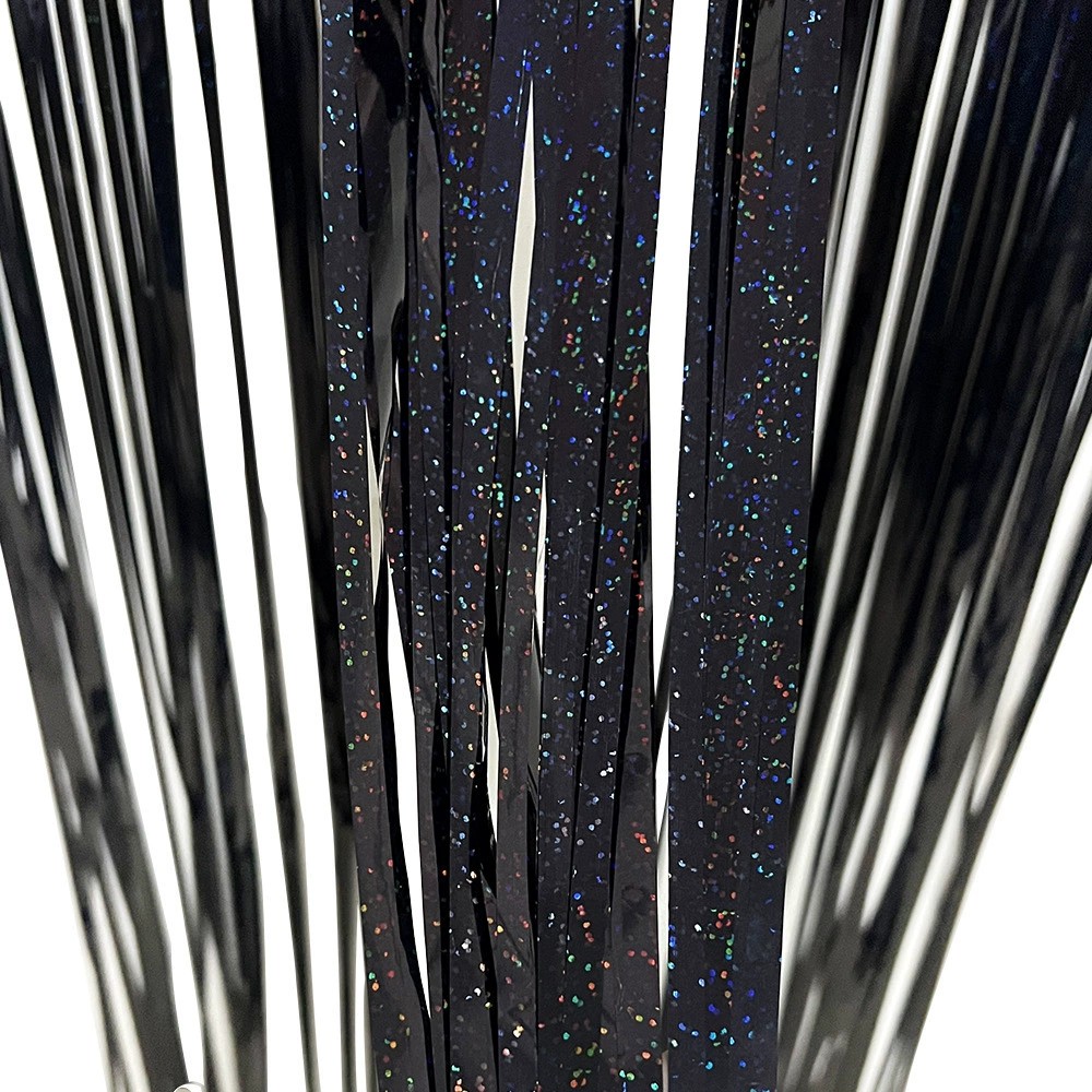 This laser rain curtain features a shimmering metallic fringe that reflects light from different angles. As a result, the backdrop produces a dynamic and dazzling effect under stage lighting, camera flashes, and natural light. Explore all types of foil rain curtains.