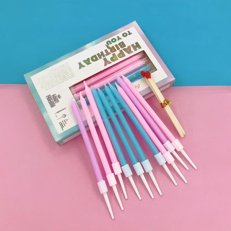 Each set includes 10 pencil-shaped birthday candles in assorted colors. Therefore, buyers can offer ready-to-use packs without additional bundling. Moreover, the mixed-color assortment supports broad appeal across different party themes.