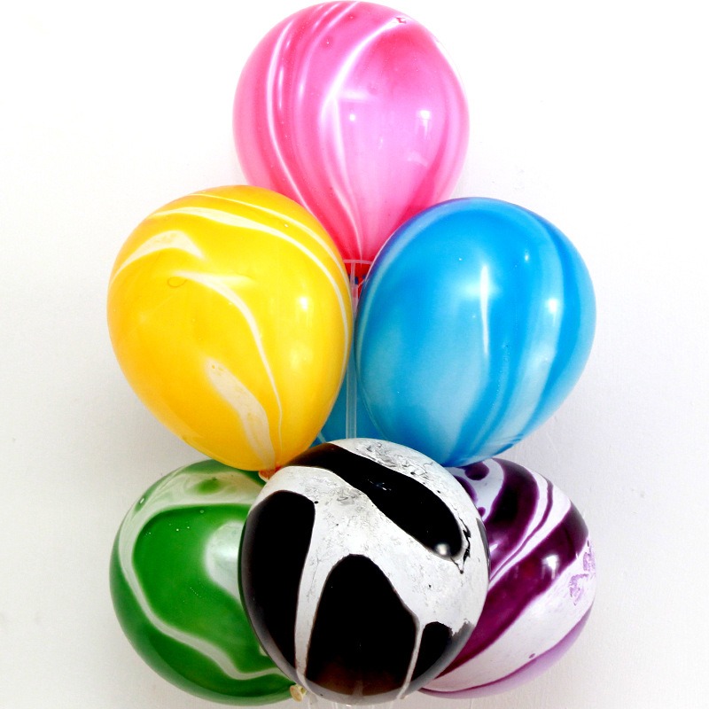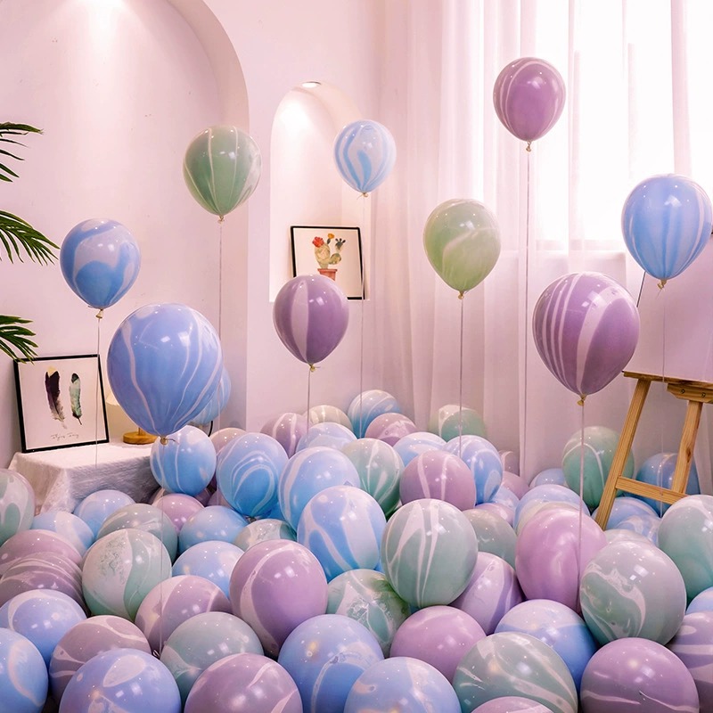 10/12-inch agate cloud balloons with vibrant marbled patterns, resembling fluffy clouds. High-quality latex, perfect for baby showers, kids’bedrooms, and spring events. Inflate with helium for floating whimsy or air for table decor, adding a dreamy vibe.