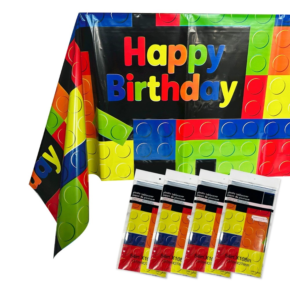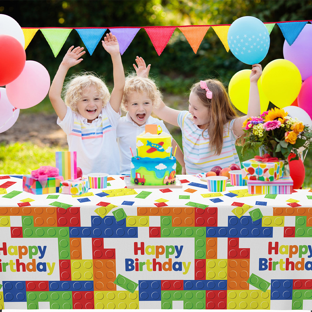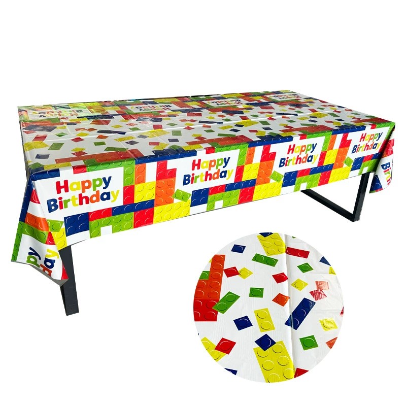 Kids’ Birthday Tablecloth Disposable with Building Block Theme