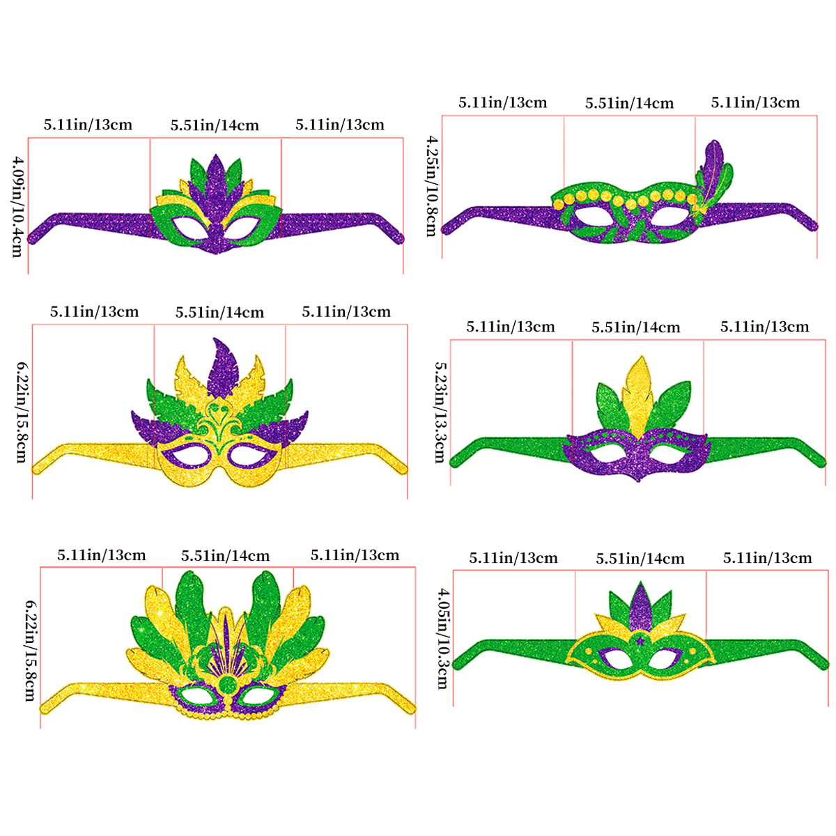 Crafted in the traditional Mardi Glasses colors of purple, green, and gold, and embellished with glittering patterns and feather-like details, the glasses perfectly capture the festive spirit and exquisite craftsmanship of Mardi Gras. They are perfect for Mardi Gras parades, parties, and more.