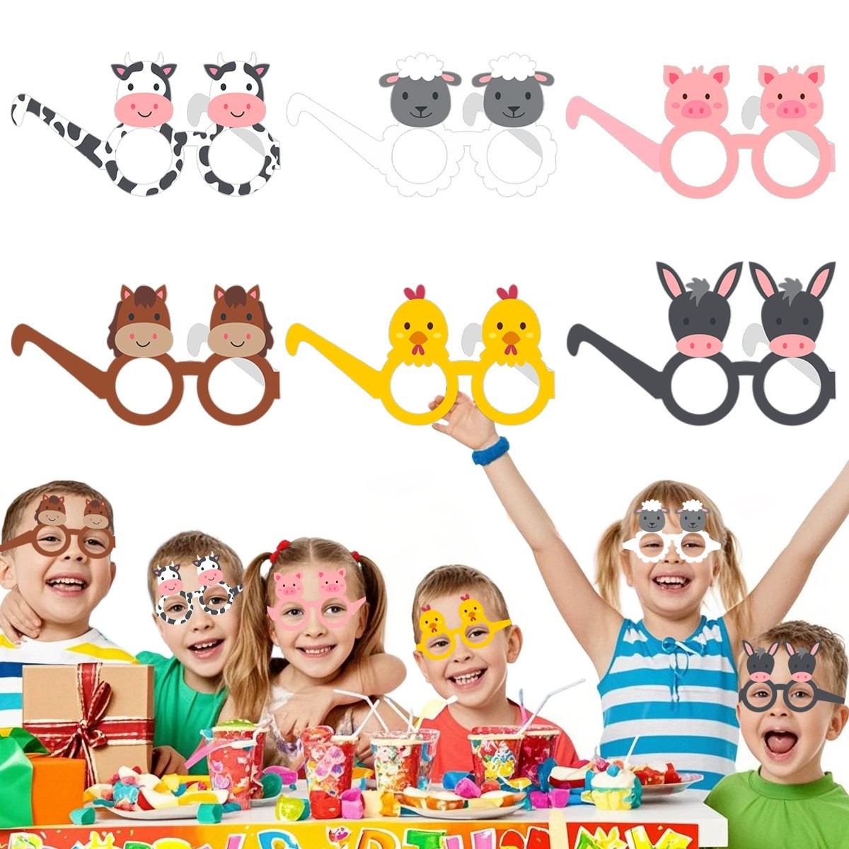 Cartoon farm animal paper glasses suit children’s birthday parties, farm-themed celebrations, school events, daycare activities, and family gatherings. In addition, party stores often include them in themed party kits and return gift bundles.