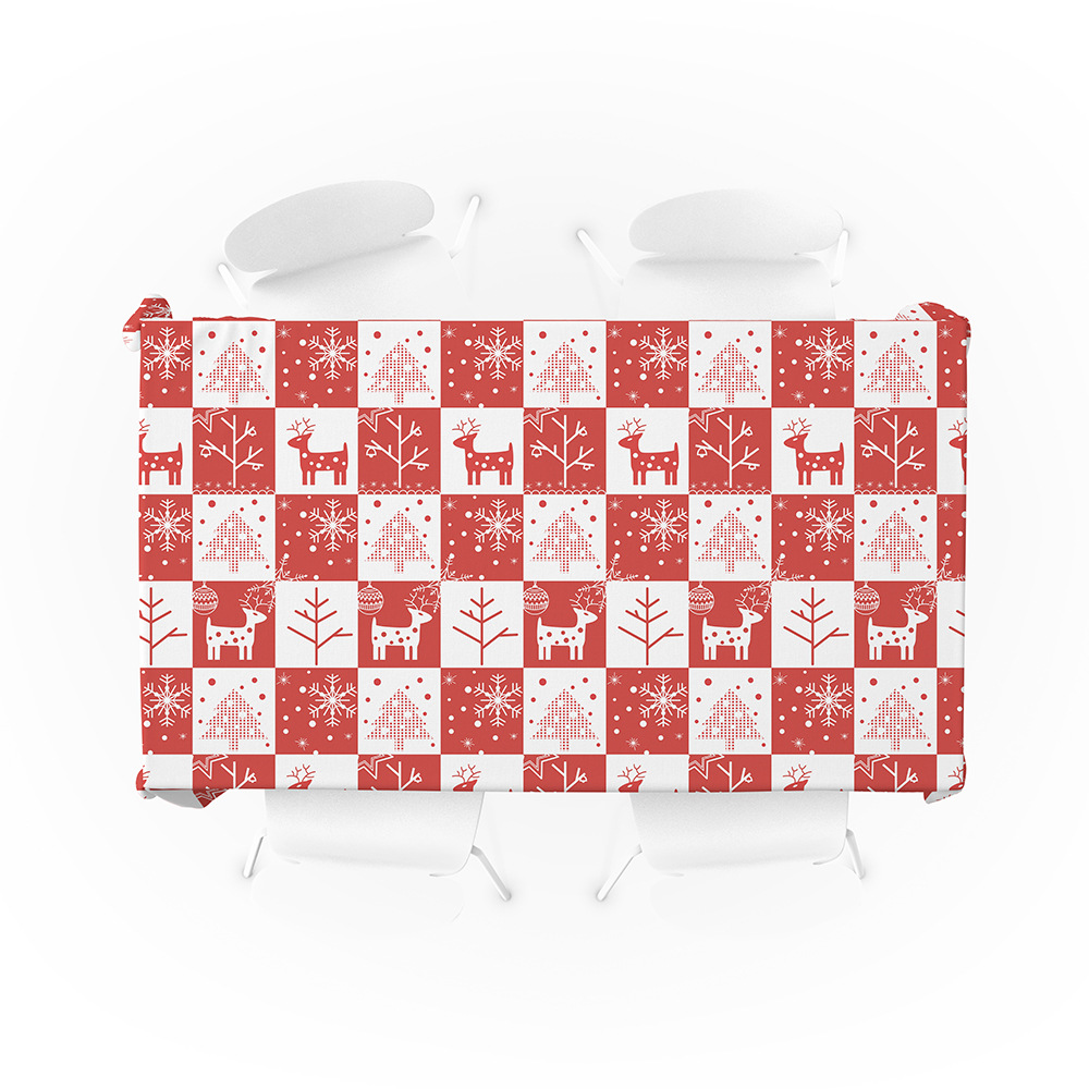 Christmas Tablecloth with Reindeer & Winter Pattern Design