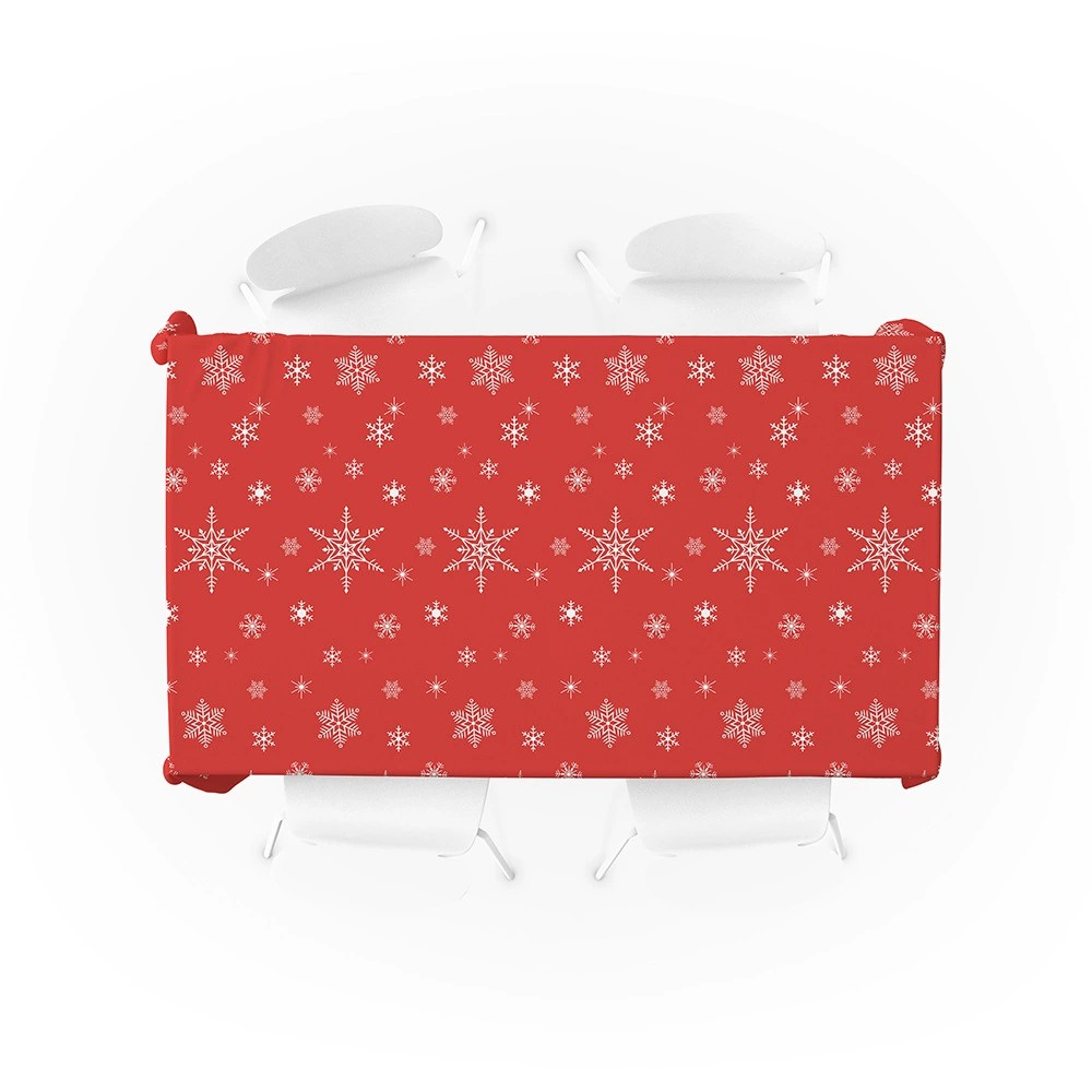 Because the design feels festive yet balanced, buyers can use this tablecloth for family dinners, office parties, and winter gatherings. In addition, the bright and clear print enhances table presentation without overpowering other decorations like candles, centerpieces, or dinnerware.