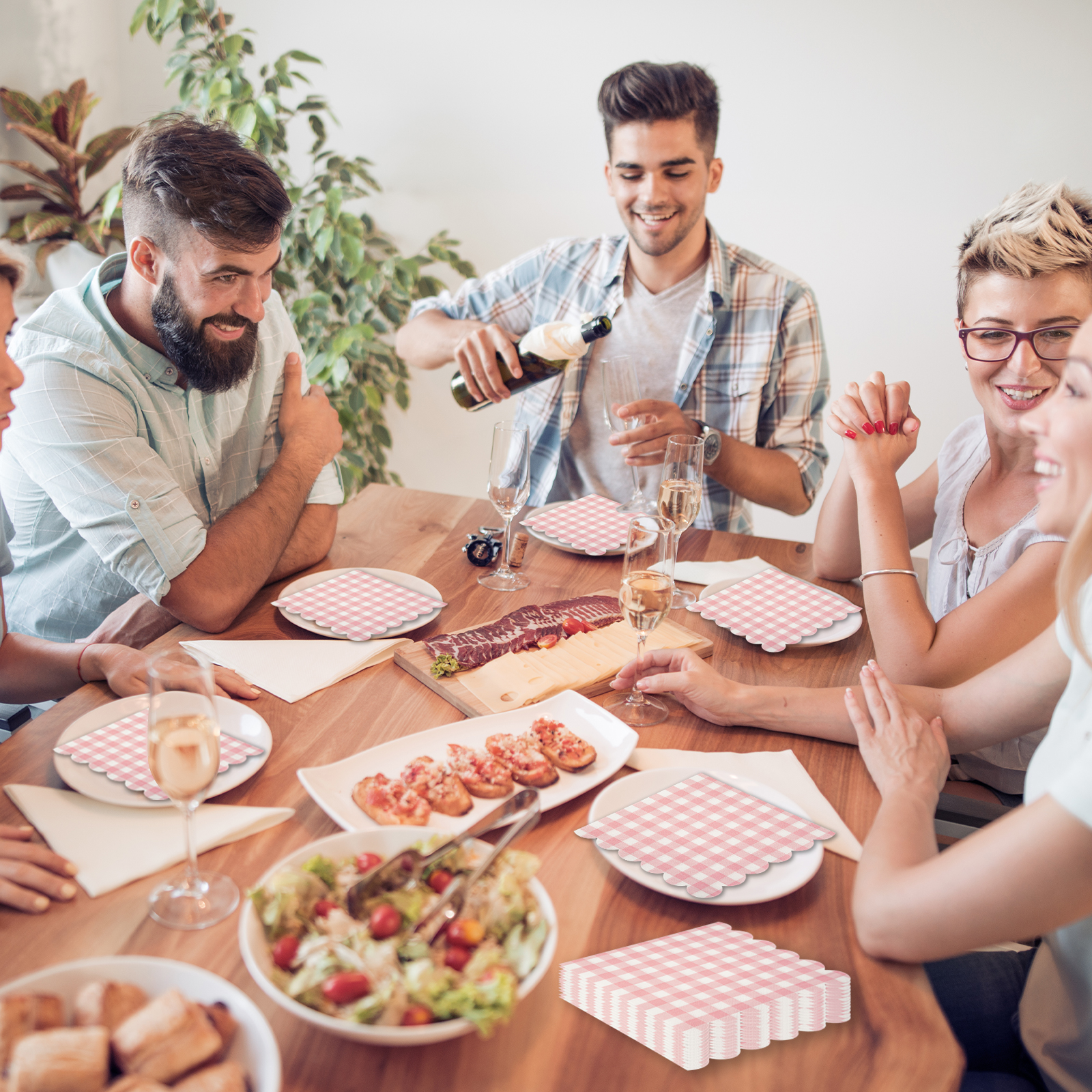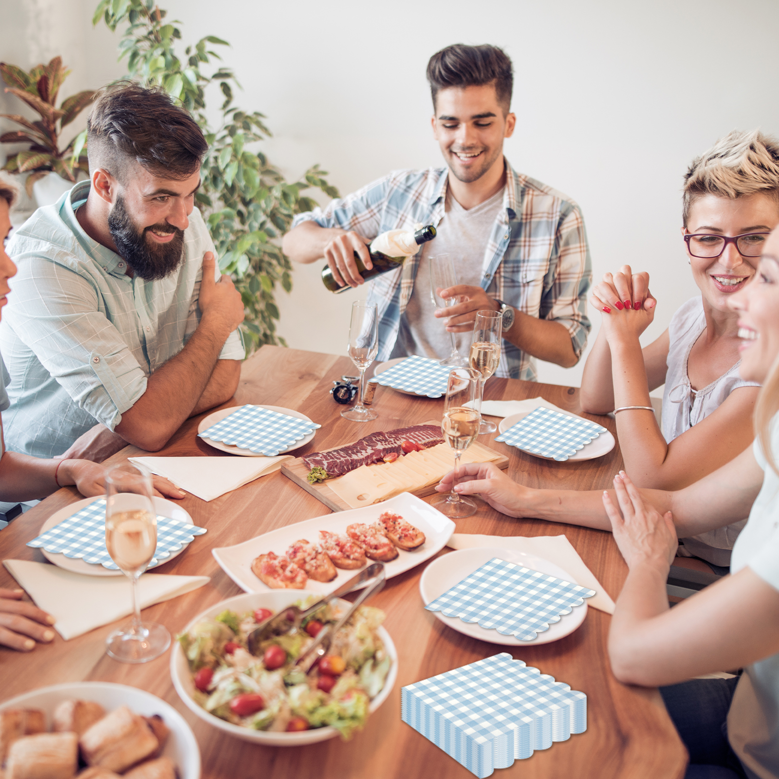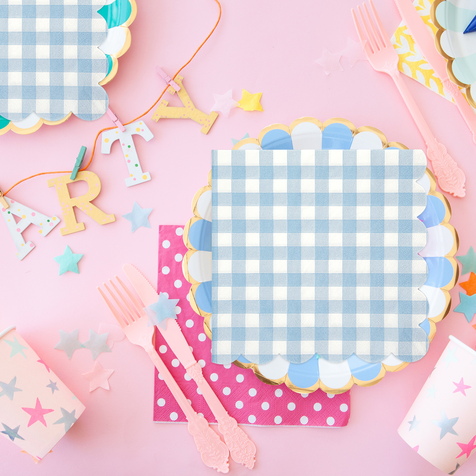 40Pc Striped napkin Classic Gingham Pattern Paper napkin 6.5 x 6.5 Inch Light Blue White Horizontal Stripes Disposable Facial napkin For Daily Use Or Themed Parties