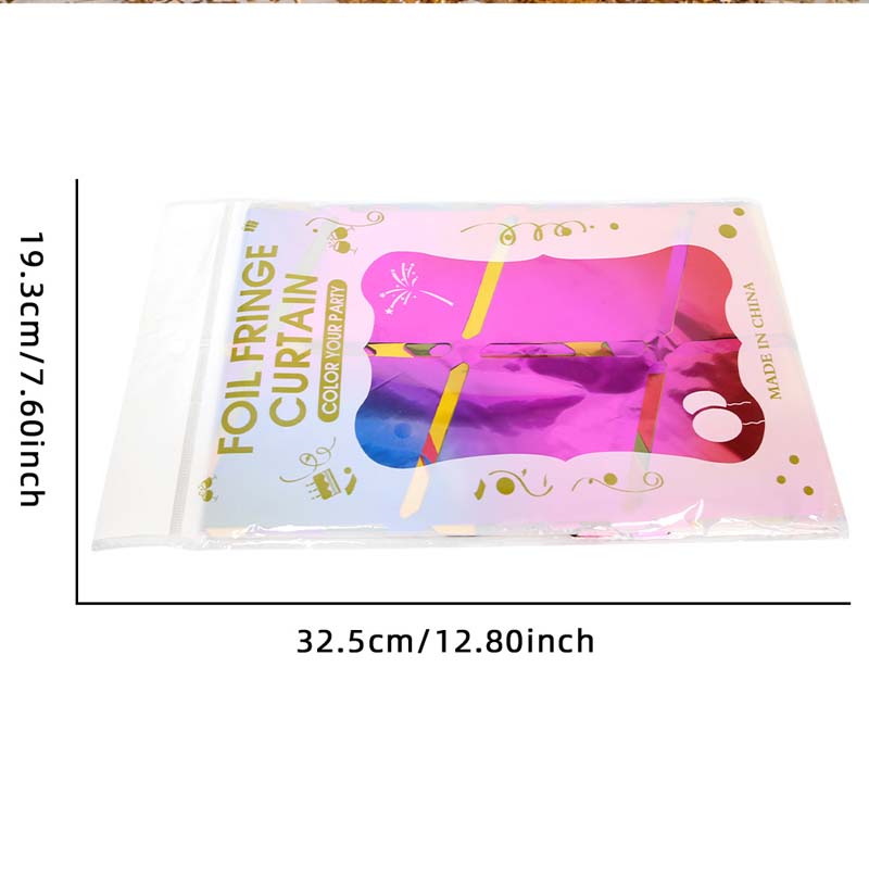 Made from lightweight metallic foil, this rain curtain hangs neatly and maintains a flowing look. Moreover, the material is durable enough for multiple uses. As a result, it provides long-lasting sparkle while keeping a glamorous appearance. Also, check out our smiley face gradient rain curtain.