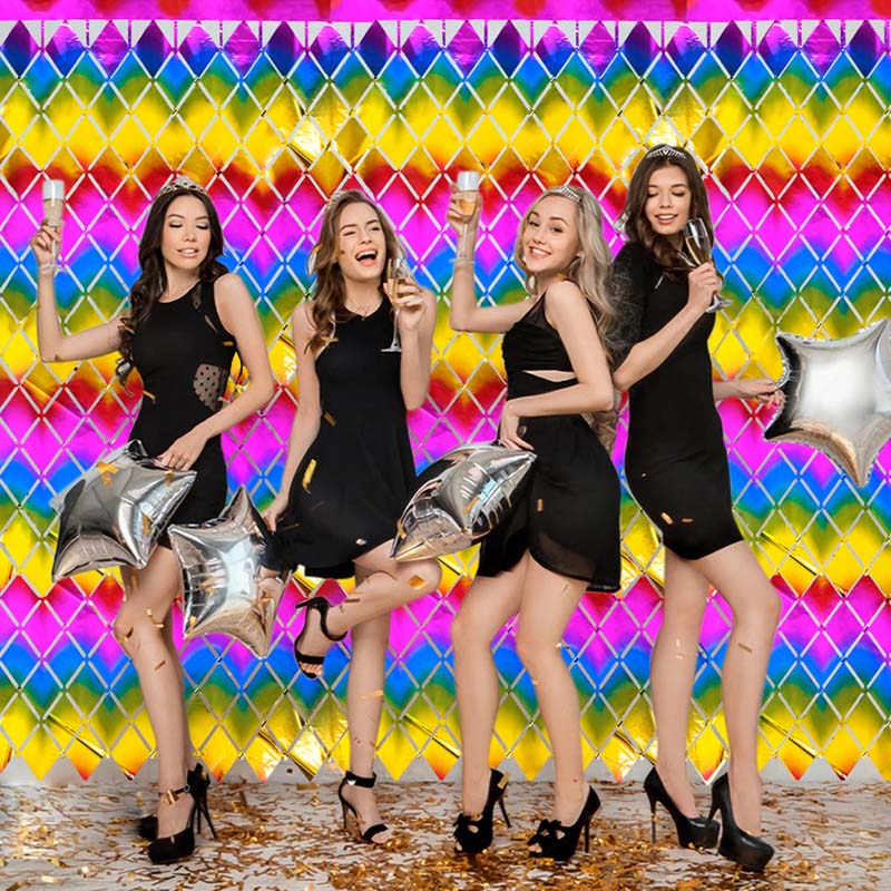 Diamond-shaped rain curtains add sparkle and energy to any event or party. They feature dazzling diamond patterns in vibrant metallic hues. As a result, they create an eye-catching backdrop that instantly enhances the festive atmosphere. Moreover, these curtains are easy to hang and suit a variety of event themes.
