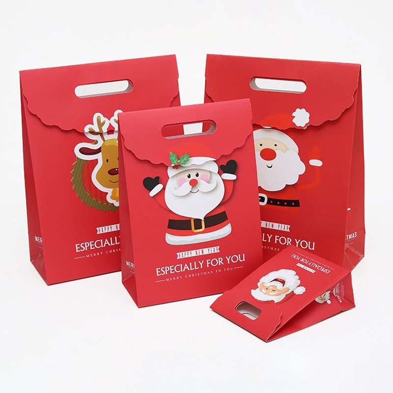 Cheerful Christmas-design bags (12cm-24cm) featuring velcro seals for secure closure. Perfect for holiday gifting or retail packaging. 600-2000pcs per 55*65*45cm box.