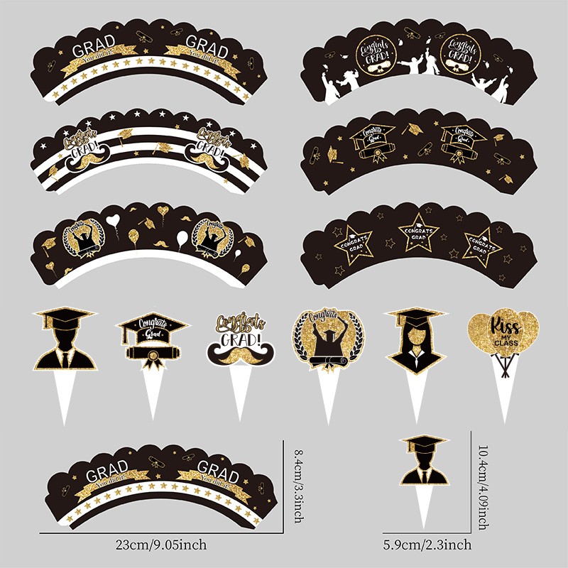 | Graduation season cake border + card insert black version | 250g white cardboard | 6 sides + 6 cards | 21 g | 9.5 × 23 × 0.5 cm |