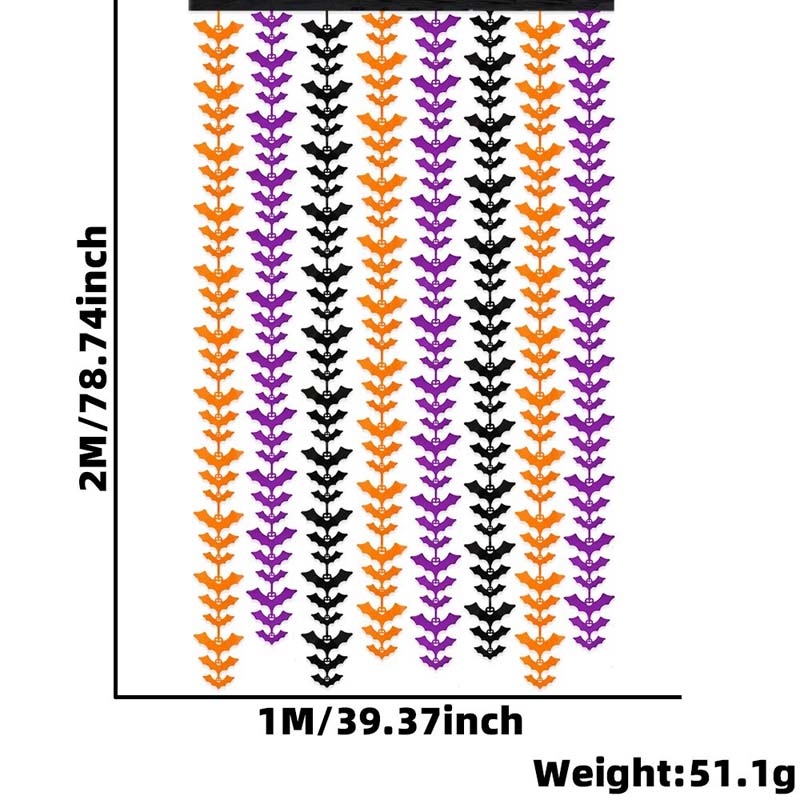 Spooky Glossy Halloween Bats Color Matching Rain Curtain Eerie Fringe Curtain In Dark Hues With Bat Silhouettes Perfect For Halloween Decor, Creating Haunted Backdrops & Frightful Event Accents
