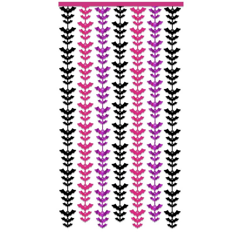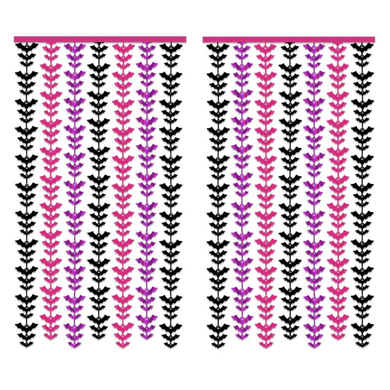 Spooky Glossy Halloween Bats Color Matching Rain Curtain Eerie Fringe Curtain In Dark Hues With Bat Silhouettes