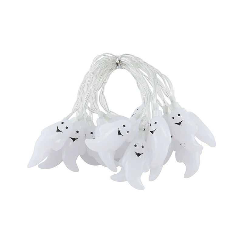 This Halloween Ghost Light String is a versatile decoration for indoor/outdoor use, available in warm white tones and multiple lengths (1.5m – 10m) with LED counts from 10 to 80. Choose between battery or USB power options to suit your setup. Ideal for creating spooky atmospheres at Halloween parties, outdoor displays, or year-round festive decor, it adds a glowing touch to your space with easy setup and reliable illumination.
