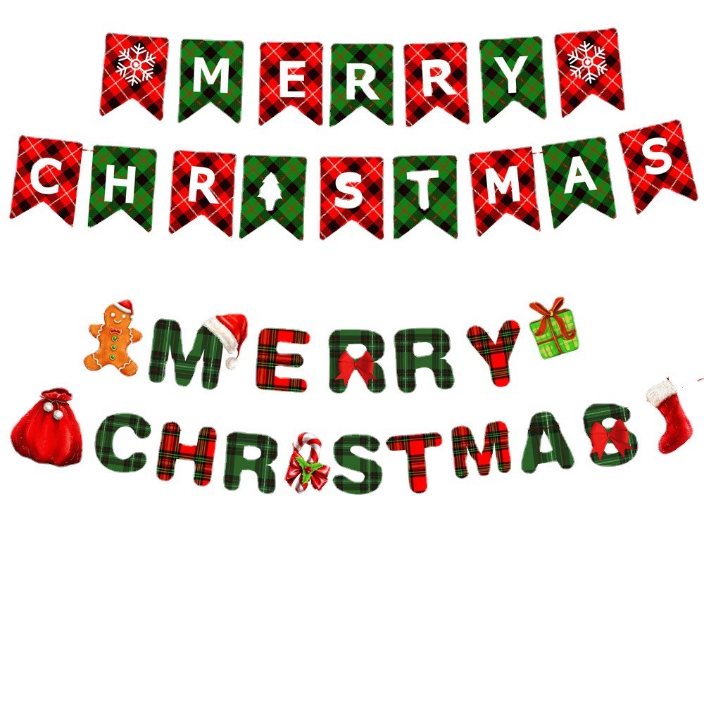 This collection includes six different Christmas hanging flag styles, each decorated with classic holiday themes. The vibrant red-and-green checkered backgrounds make the banners stand out, while the cheerful illustrations add joy to every celebration.