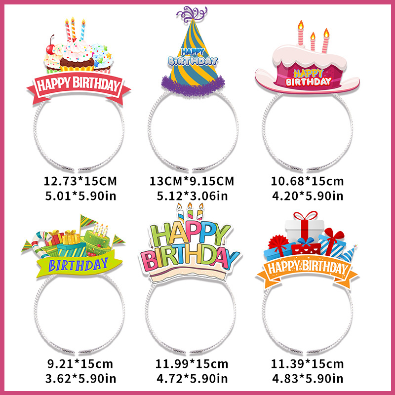 This happy birthday headbands set features bright and playful designs such as birthday cakes, party hats, and “Happy Birthday” banners. Each design adds visual interest and supports common birthday themes used worldwide.