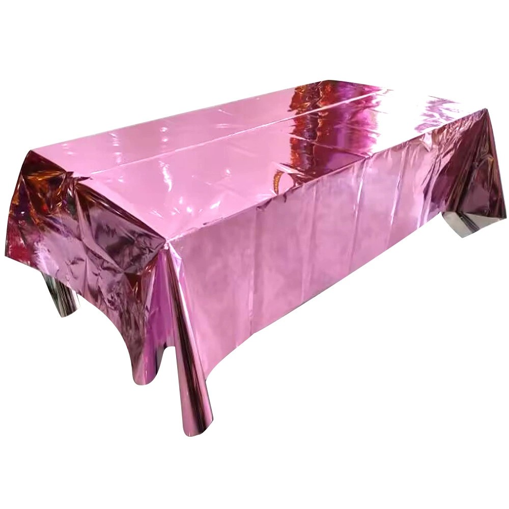 These PET – material tablecloths come in vibrant metallic hues like pink, blue, gold, etc.