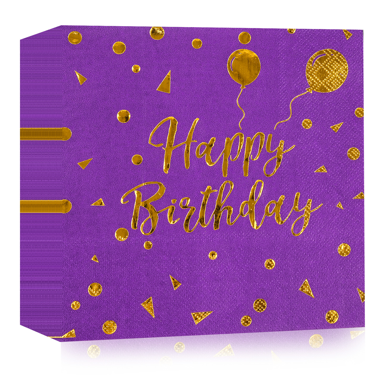 40Pc Purple Birthday napkin, 6.5*6.5 Inch, in Vibrant Purple With Festive Birthday Patterns. These Disposable napkin Are Perfect For Adding A Pop Of Color And Joy To Any Birthday Celebration.