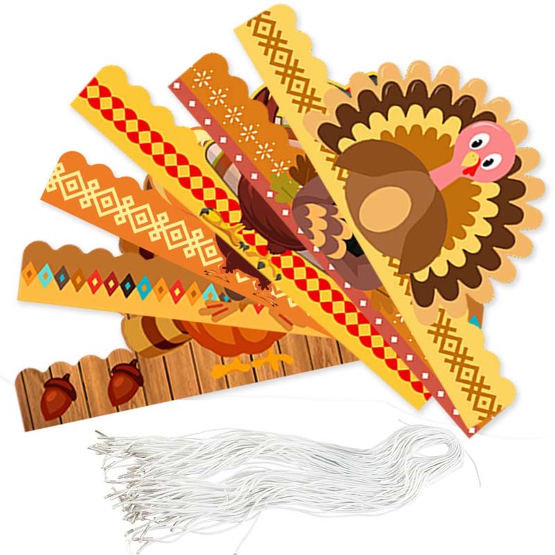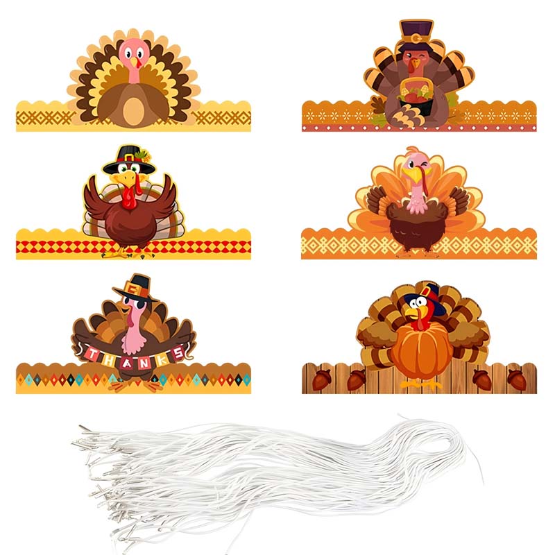 Wholesalers choose this Thanksgiving-themed party crown hats set because it combines classic holiday imagery with interactive fun. Moreover, the inclusion of fastening strings improves usability for both adults and children.