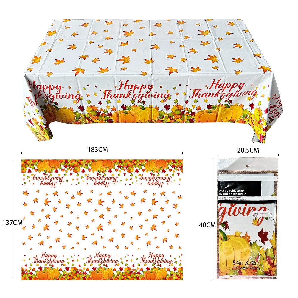 This PE – material tablecloth features a lovely Thanksgiving design with pumpkins, autumn leaves, and “Happy Thanksgiving” text. Ideal for Thanksgiving dinners, fall gatherings, or harvest parties, it’s waterproof to protect tables from spills. Easy to use and dispose of, it saves cleanup time while adding a warm, festive autumnal vibe to your celebration.